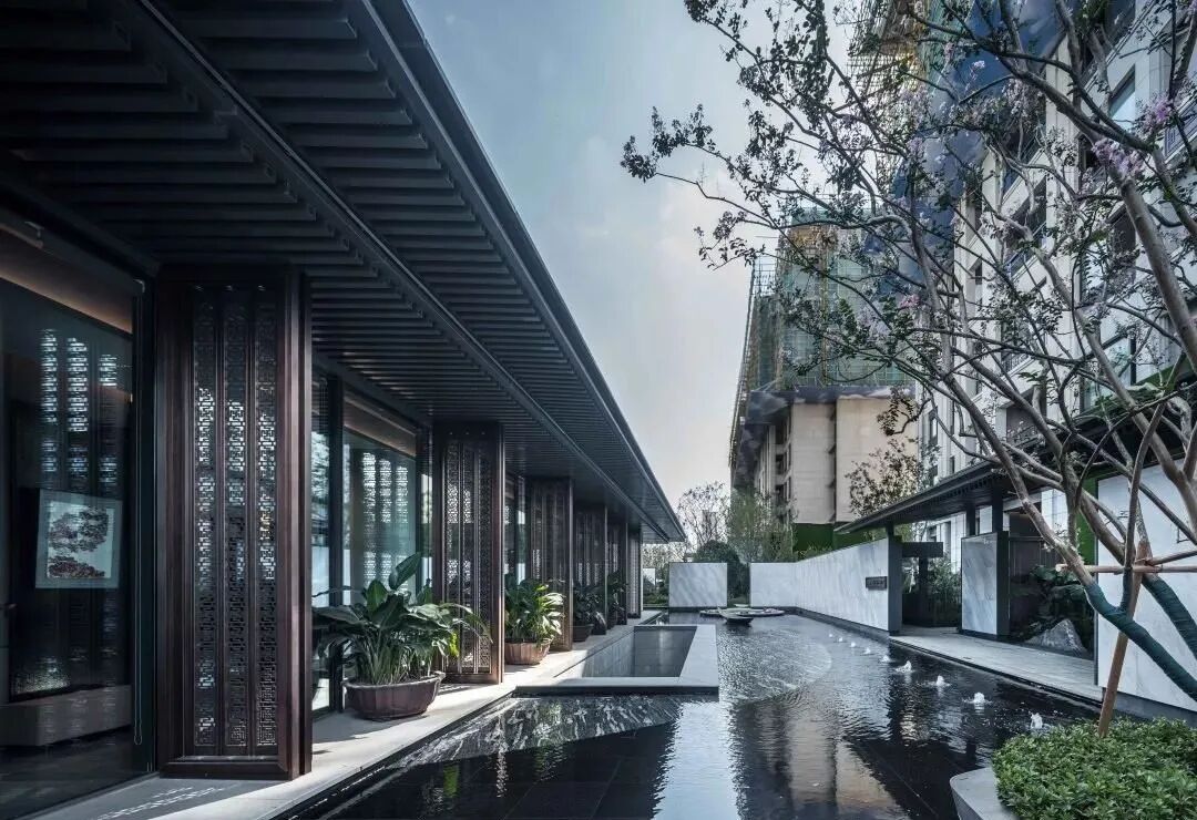 示范区后场,建筑与景观水景相结合,打造出园林式的后场,为王府大宅营造了一处“小桥流水,粉墙黛瓦”的后场休憩空间。
